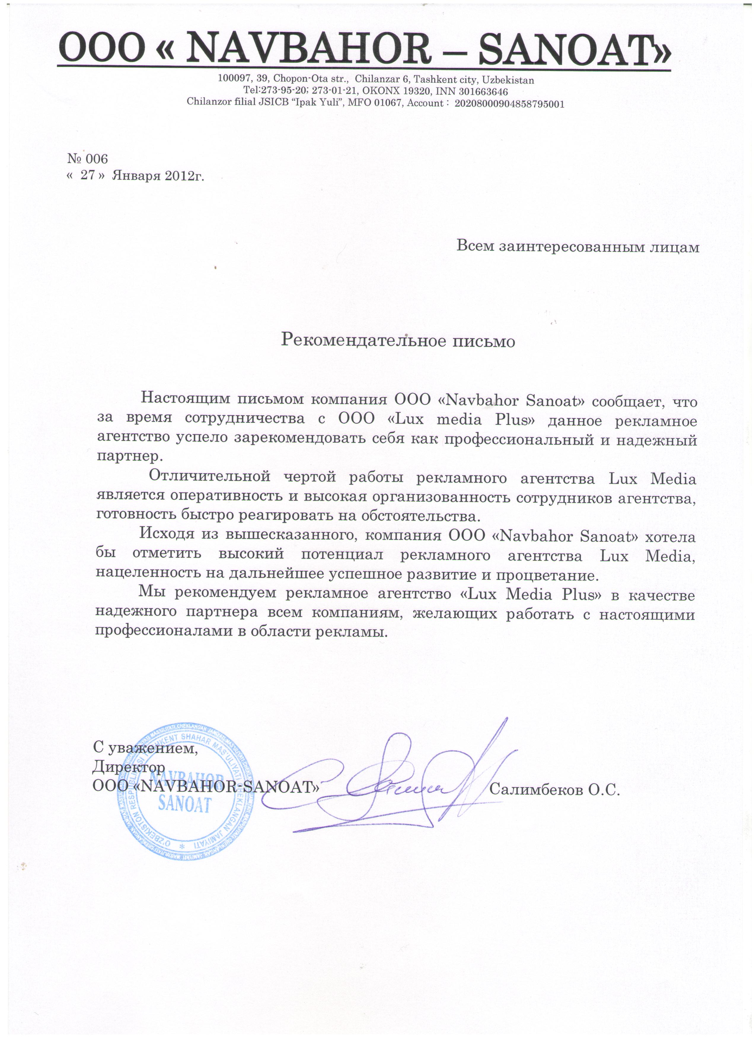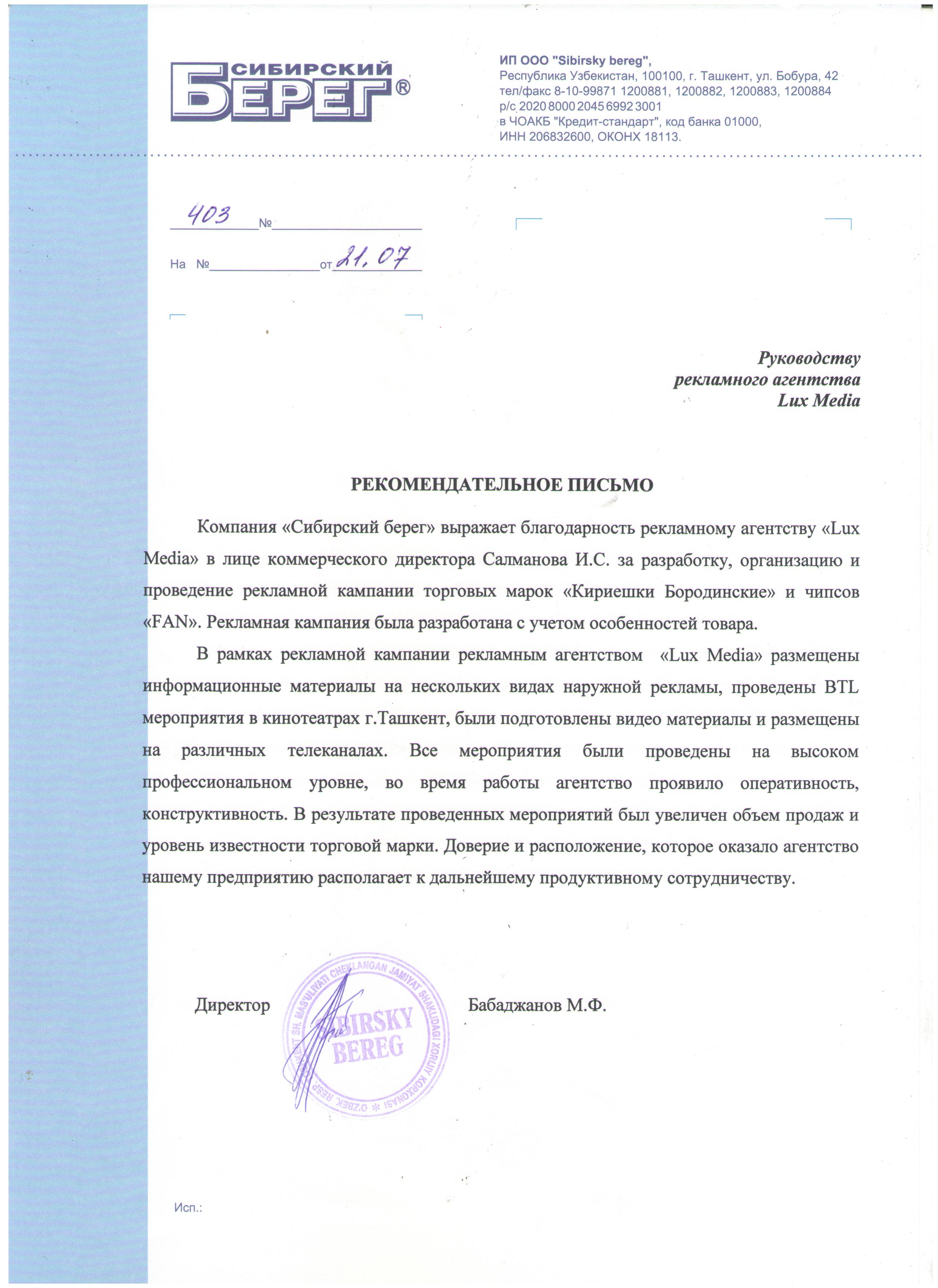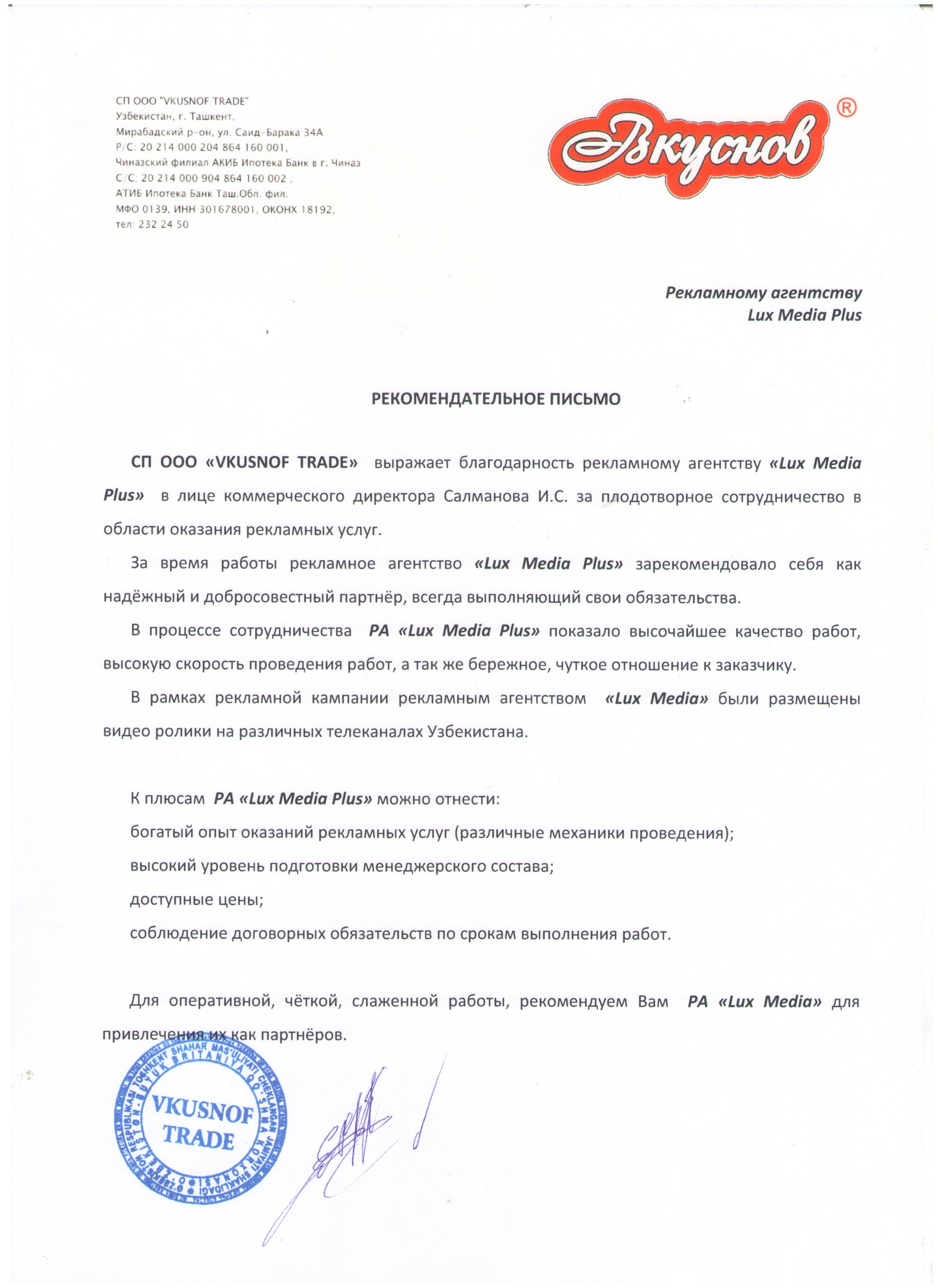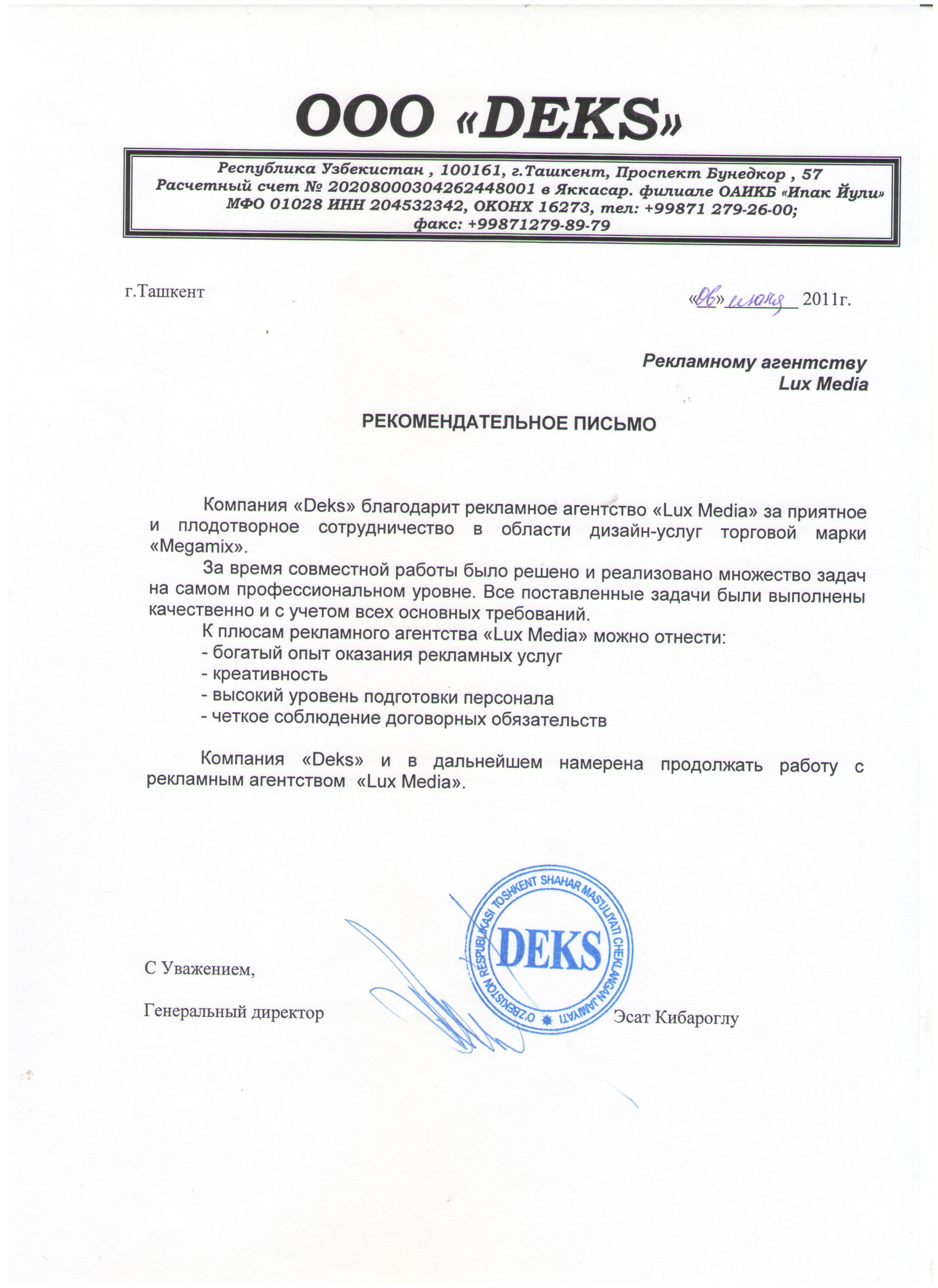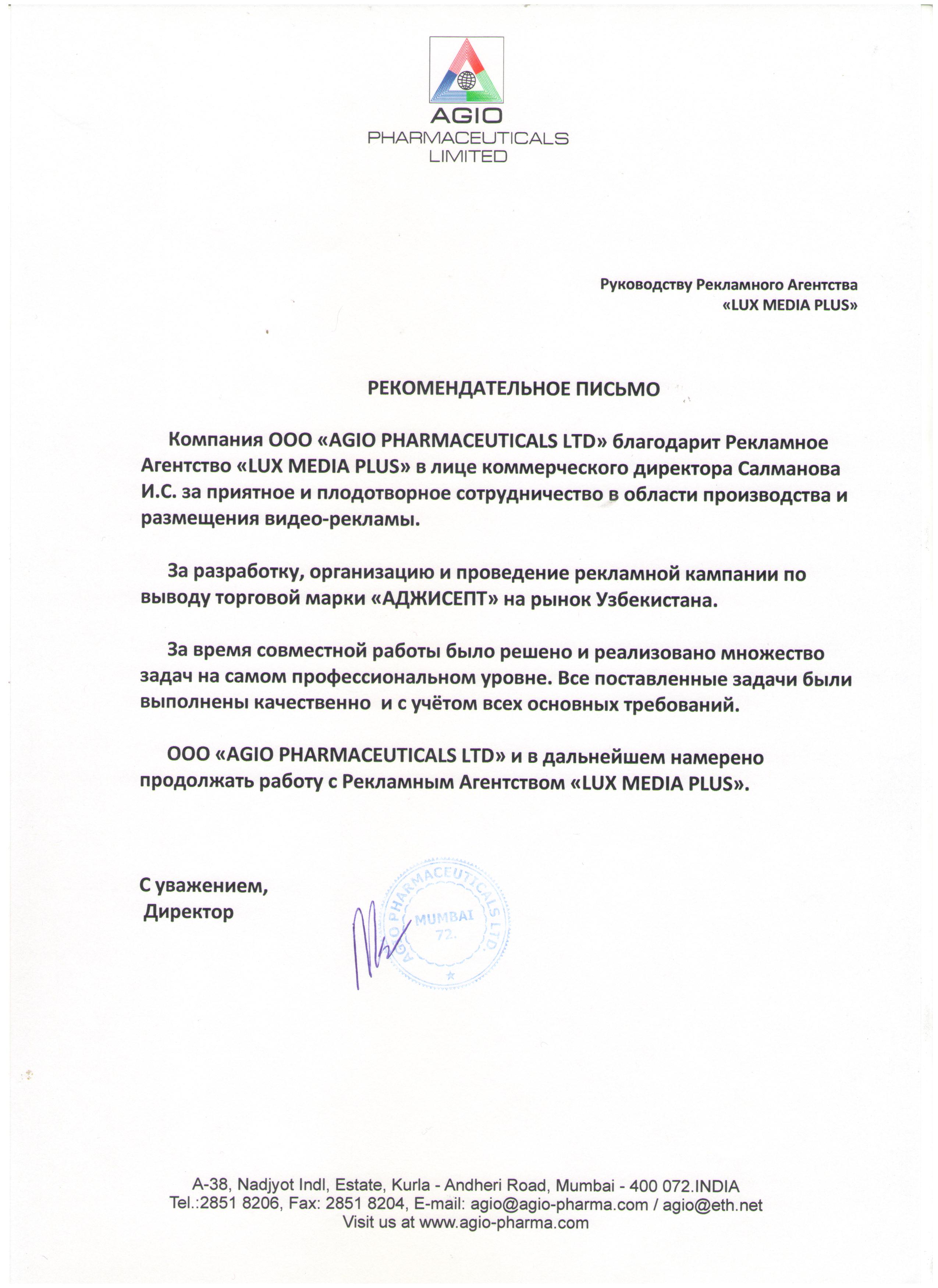 Лидирующее рекламное агентство, предоставляющее услуги по размещению рекламы на телеканалах (Узбекистон ТВ, Узбекистон 24, Ёшлар ТВ, Кинотеатр ТВ, Наво ТВ , ZOR TV, MY5, Sevimli TV, Milliy TV, Uzcable TV, UzDigital TV и региональные ТВ ) и радиостанциях (Эхо Долины, Хамрох, Ориат ФМ, Ориат Доно, Узбегим таронаси, Пойтахт, Maxima, Nostalgie, Гранд, Рухсор )